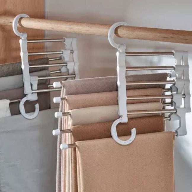 Home 5 In 1 Magic Trouser Rack Hangers Stainless Steel Folding Pant Rack Tie Hanger Shelves Bedroom Closet Organizer Wardrobe Storage
